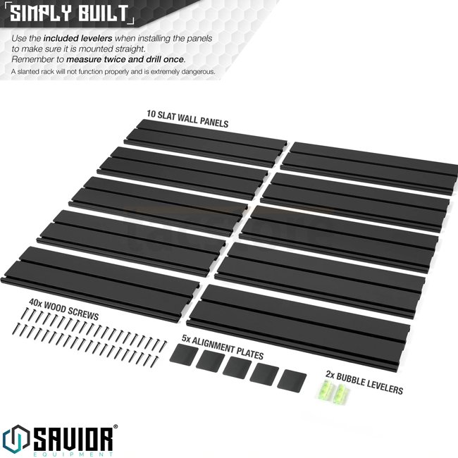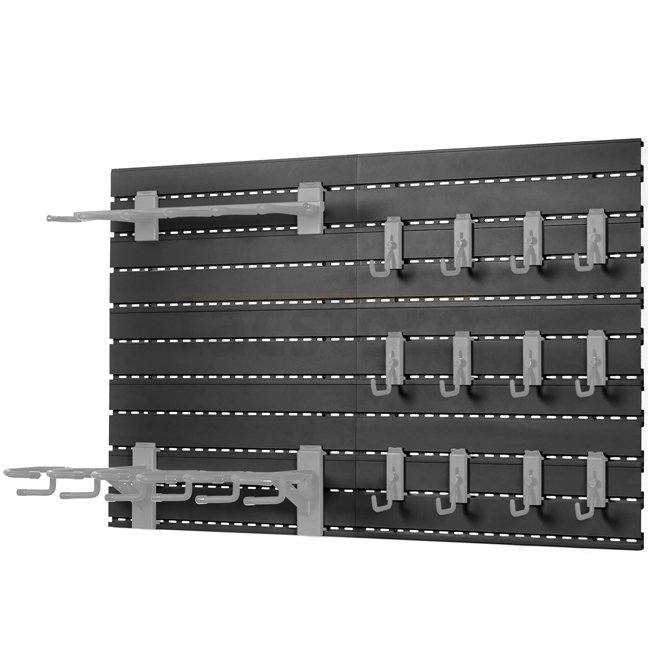 The Savior Equiment Wall Rack System offers you the opportunity to hang weapons and equipment on a wall in a practical and aesthetic way. The Wall Rack System Panels serve as the basis for the various Savior On-Center Slat Wall Accessories, with which you can mount your firearms and equipment on the panels. 10 Panels included.