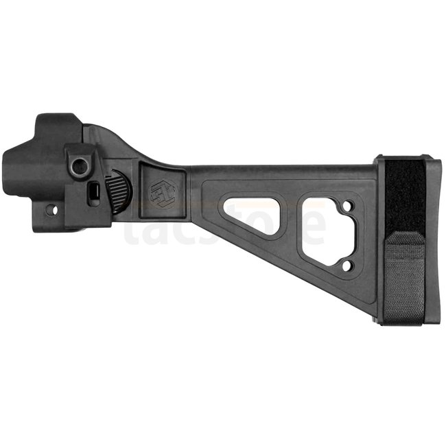 The SBT5 enhances MP5 / MP5K reverse stretch clones with a side-folding polymer endplate and an integral design that delivers a compact profile while improving control. Designed for 9 mm platforms with a single rear push-pin.