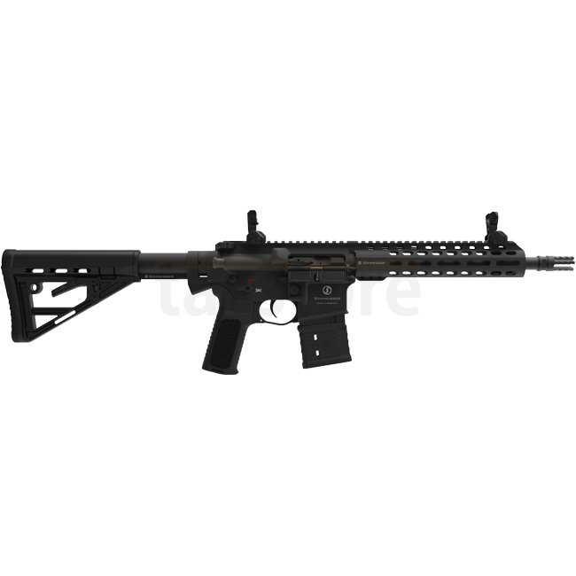 The Schmeisser AR15 S4F is a semi-automatic rifle chambered in .223 Remington, featuring a 10.5-inch (267 mm) match-grade barrel. Its compact design makes it ideal for dynamic shooting disciplines and close-quarters scenarios.