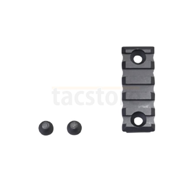 Schmeisser Picatinny Rail M-LOK 5 Slots. Compact and reliable, made of high-strength aluminum with matte black anodized finish. 5 slots (5.08 cm), compatible with M-LOK mounting systems. Lightweight and robust design for precise accessory placement.