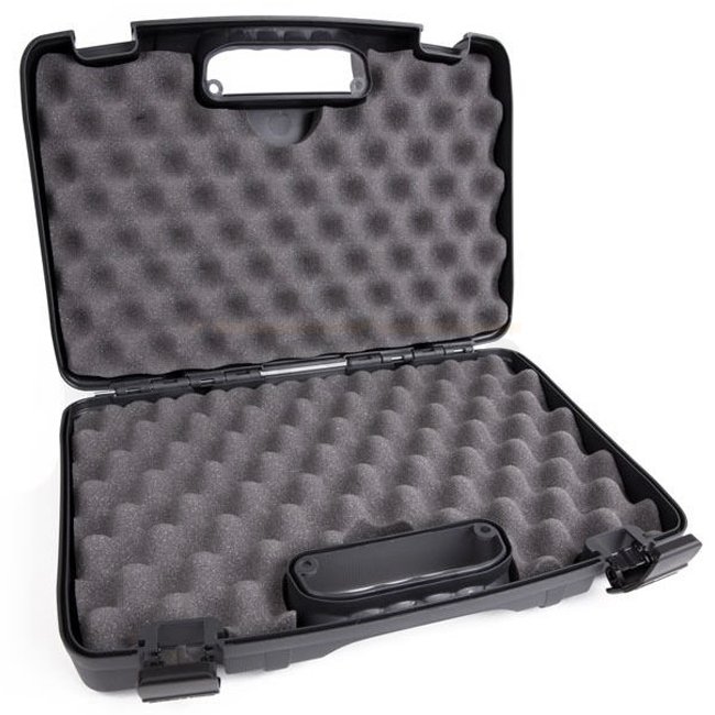 Pre-cut foam provides precise fitment for a large pistol and additional accessories, preventing movement during transport.