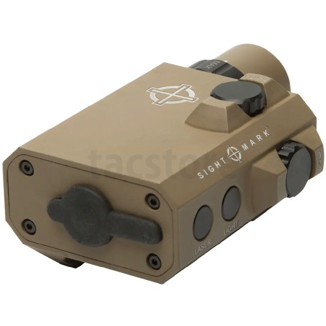 Sightmark LoPro Mini Combo Flashlight & Green Laser Sight - Dark Earth - Compact design, powerful performance <5 mW visible laser, 300 lumens light output. Picatinny/Weaver mount, 200 MOA adjustment, 18h laser runtime, 48m light runtime, 1x CR123A battery