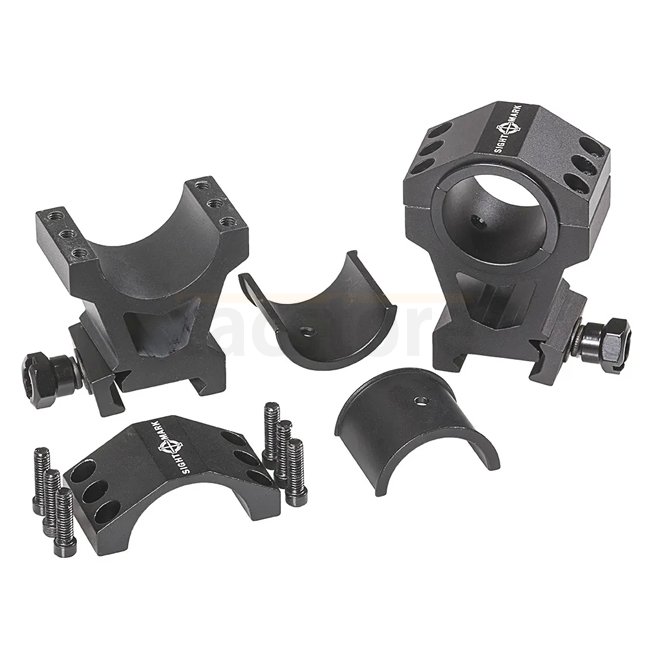 Sightmark Tactical Mounting Rings 30mm & 1 Inch - Extra-High Height. Weaver / Picatinny mount type, 1 Inch / 25.4 mm tube diameter. Made of Aluminium 6061-T6. Torque mount: 163-190 Nm, Torque ring: 25.8-29.8 Nm. Weight (pair): 366 g. Height centerline: 40