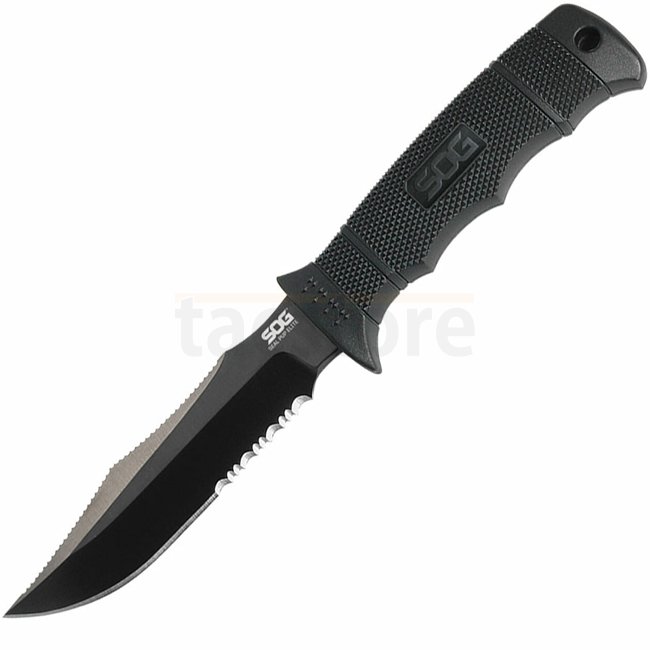 Compact and durable, the SOG Seal Pup Elite Serrated Black knife comes with a Kydex sheath for easy carry. Made from AUS-8 steel, it boasts a 123mm blade and a total length of 241mm. Featuring a strong glass-reinforced nylon handle, this knife weighs 153g