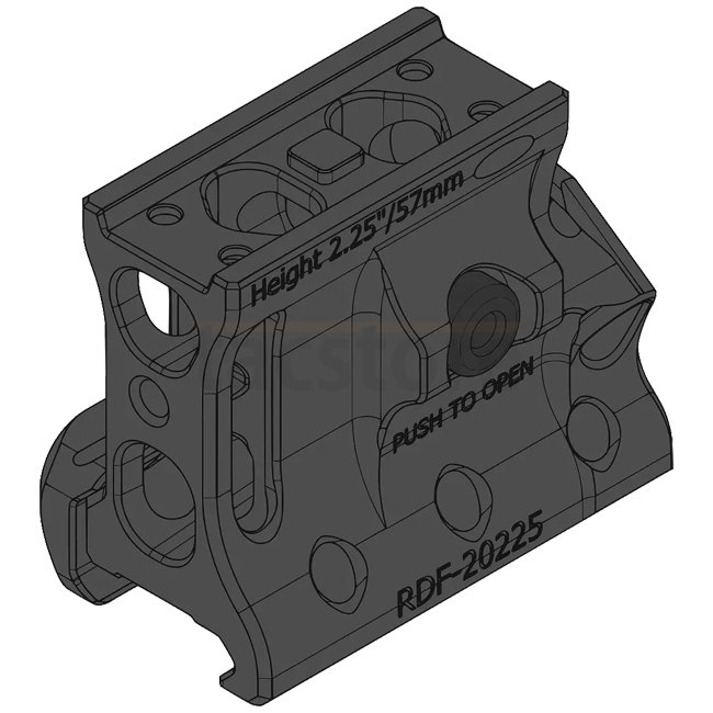 The Spuhr RDF-20225 is a lightweight and durable Picatinny flip mount designed for Aimpoint Micro and CompM5 red dot sights. With a height of 57mm/2.25 inches, it offers an optimal sight picture for AR-15/M4-style platforms. This mount weighs 126g (4.4 oz) and is compatible with various accessories.