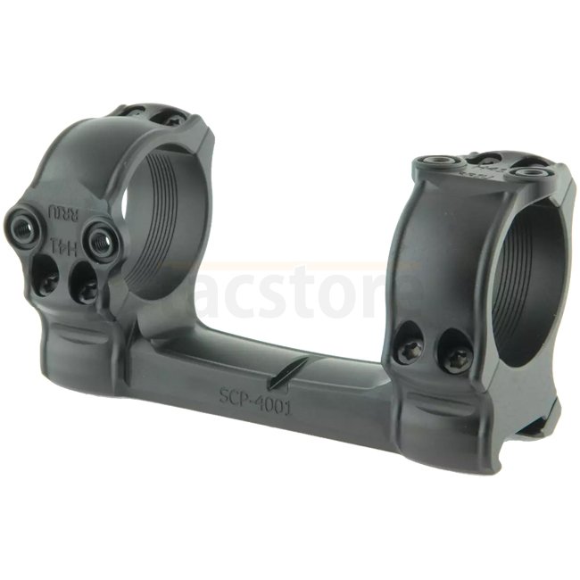 The Spuhr SCP-4001D is a Hunting Series scope mount designed for use on Picatinny rails. It features two interface rings, allowing for accessory attachment. The mount can be oriented for both left- and right-handed shooters and includes two separate side clamps.