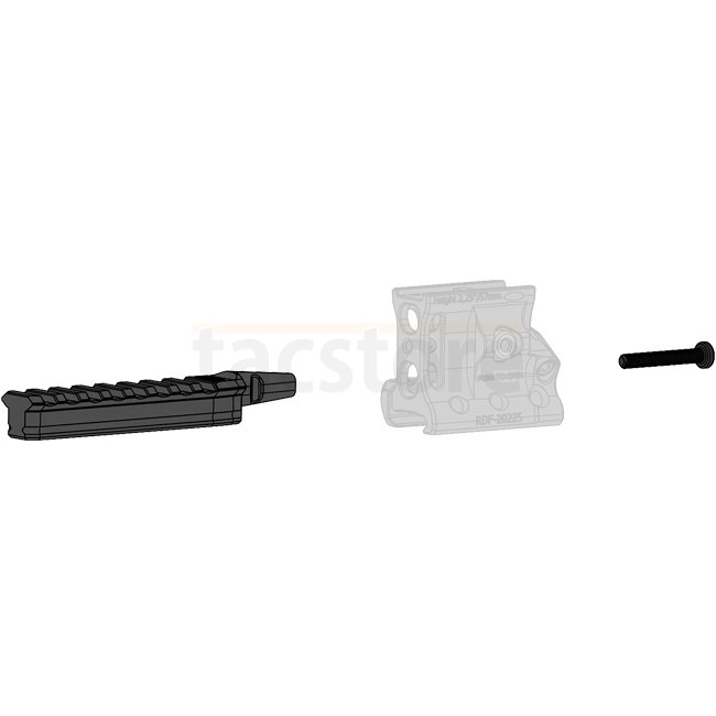 The Spuhr A-0229 Picatinny Rail is designed to attach accessories such as laser illuminators to the front of the RD/RDF series of mounts without obstructing the line of sight. This allows for seamless integration of additional equipment while maintaining a clear view.