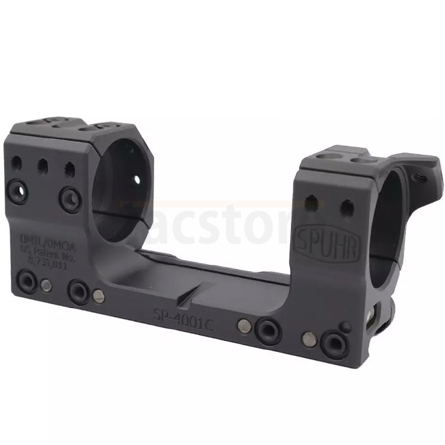 The Spuhr SP-4001C is a high-quality one-piece scope mount designed for rifles equipped with MIL-STD-1913 or STANAG 4694 Picatinny rails. It is particularly suitable for bolt-action rifles with one-piece Picatinny rails. This mount is compatible with 34 mm scope tubes, including those with extended erector housings.