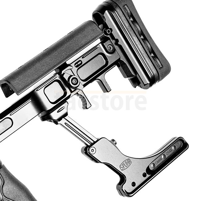 The Spuhr CA006 SICS™ Adjustable Bag Rider is designed to enhance the stability and accuracy of your rifle during shooting sessions. This accessory attaches to the Spuhr® Ideal Chassis System (SICS™), providing a smooth and adjustable interface for rear support bags, allowing shooters to make precise vertical adjustments without changing their shooting position.