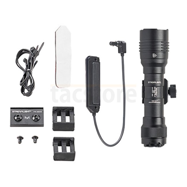 Package Contents: Lamp, Remote Switch, Push-Button Tailcap Switch, Remote Retaining Clips, Double-sided Tape & Zip Ties, M-LOK mount, Picatinny mount