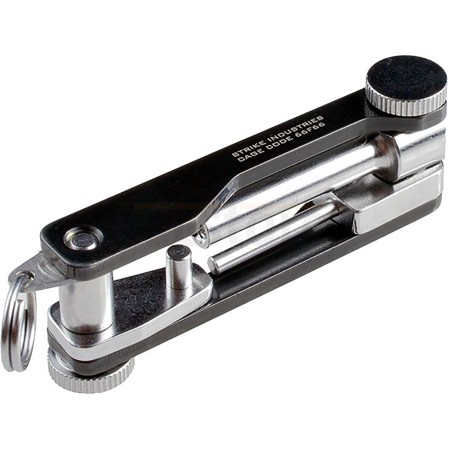 The Strike Industries All in One Tool for Glock is a compact and durable multi-functional tool designed for Glock users. Features include a Glock Base Plate Removal tool, Pin Punch tool, Front Sight Removal tool, and a compact folded design made of steel.