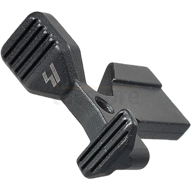 Mil-Spec bolt catch, wide surface area latch for enhanced operation, solid steel construction, sleek Strike Industries design.