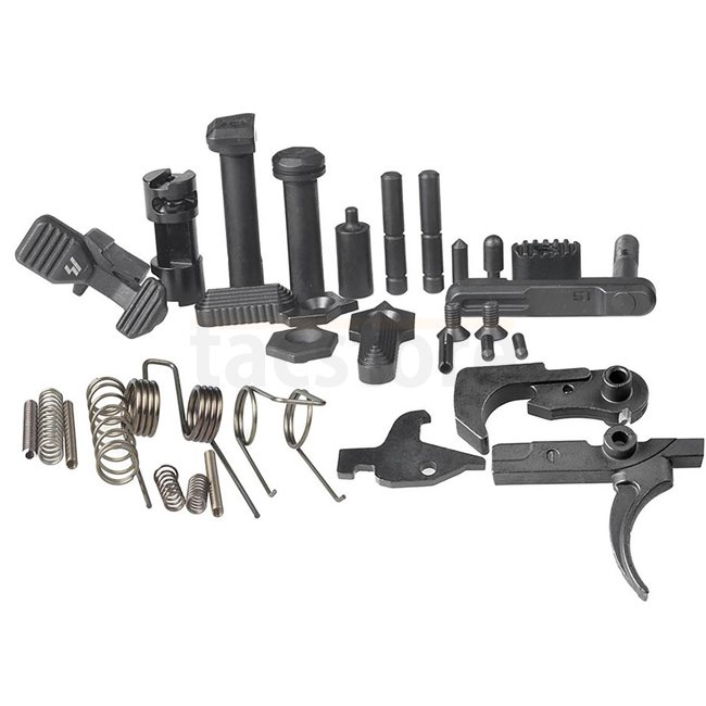 Enhance your AR-15 lower receiver with the Strike Industries Lower Receiver Parts Set. Package includes enhanced parts like Bolt Catch, Pivot Pin, Takedown Pin, and many more. Compatible with AR-15 Mil-Spec lower receivers.