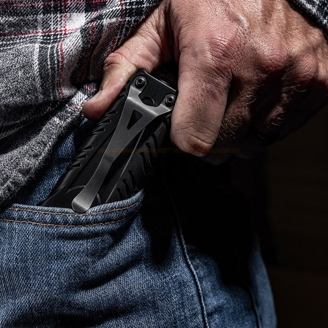 - Melonite®-coated, reversible heavy-duty spring steel pocket clip enables secure bezel-up or bezel-down carry