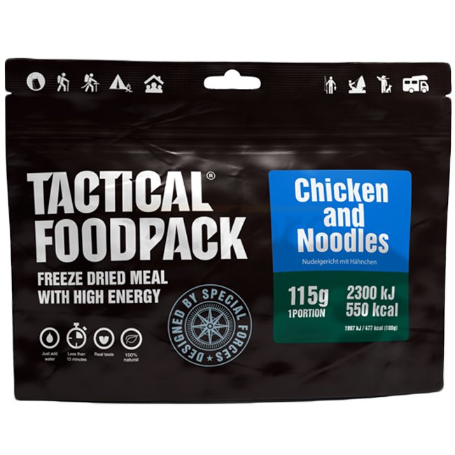 Noodles with chicken, with a pleasant taste of coconut milk and different spices. 100% natural, without preservatives and additives. Tactical Foodpack is the best freeze-dried food for camping, hiking and outdoor adventures.