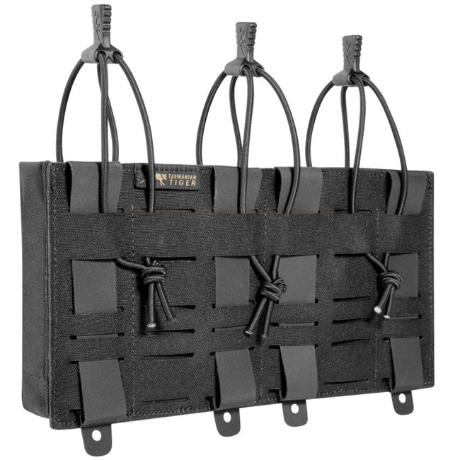 Tasmanian Tiger 3 SGL Mag Pouch BEL MK III - Black: Fits three G36/SG55X magazines. Made of CORDURA® 700D, weighing 160g. Dimensions: 12.5 x 25 x 3.5cm.