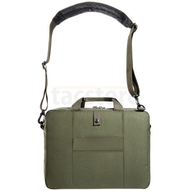 Removable, padded shoulder strap; Robust handle; Integrated, padded laptop compartment; Front compartment with elaborate organizer; two large compartments for folders; Front and sides with MOLLE system for individual expansion