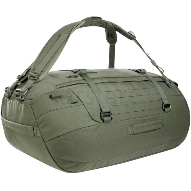 Robust equipment bag made of 700d Cordura with 65 liter volume, detachable shoulder straps, lockable zipper sliders and padded bottom. With MOLLE system on the outside and laser-cut MOLLE.