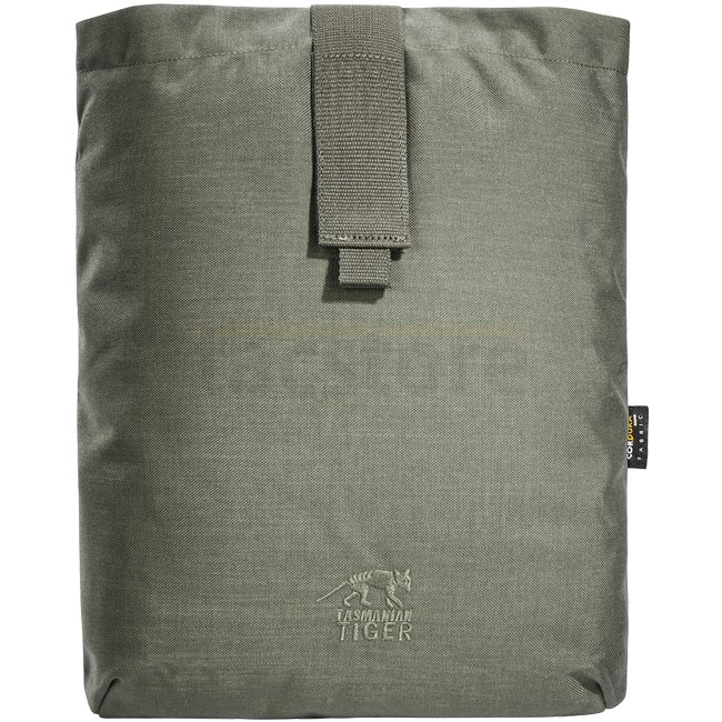 “Dumping pouch” for magazines or other utensils. Made of CORDURA® and material with IRR treatment. Both the European CORDURA® materials as well as web-bing, hook-and-loop fasteners and buckles meet the high German Bundeswehr standards TL 8305-0278 and TL 8305-0281 with regard to the IRR camouflage effect (IRR 650 – 1250nm / 10 – 42%).