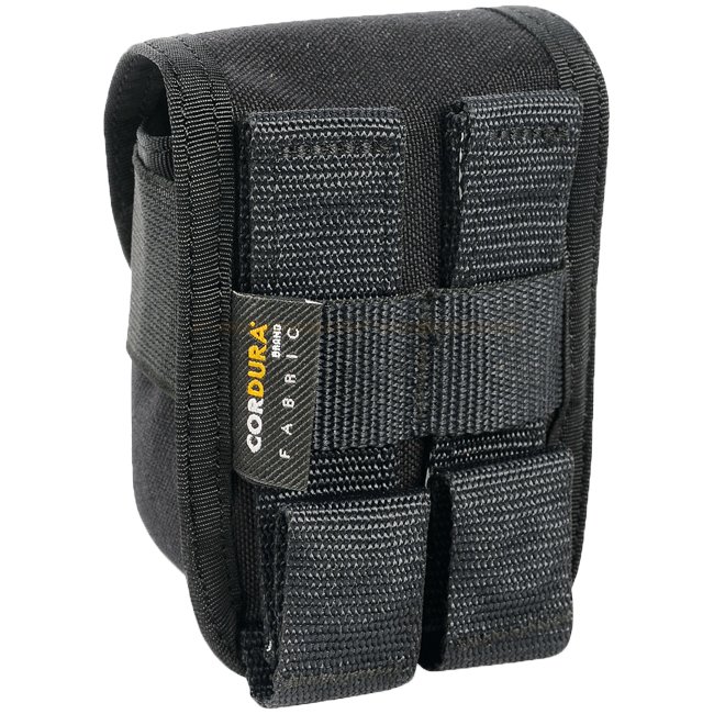 A versatile hand grenade pocket designed to fit various models, featuring elastic side compression, silent closure, and compatibility with specific cartridges. Made with durable CORDURA 700D material and equipped with MOLLE snap button system. Dimensions:
