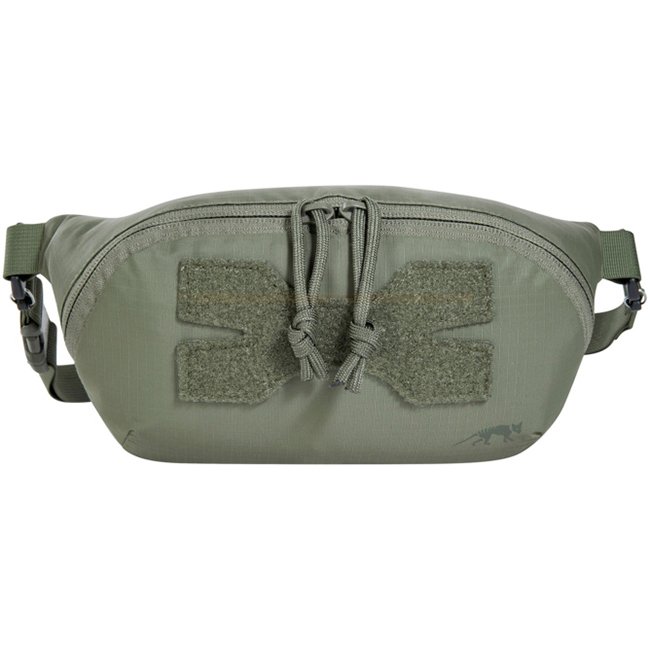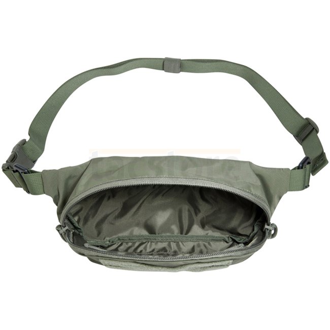 Lightweight, flexible hip pouch with a main compartment featuring flat mesh sleeves and a flat rear zip pocket. The front X-shaped loop panel lets you fold it down compactly. The adjustable, removable hip belt uses hooks so the pouch can be hung into MOLLE systems.