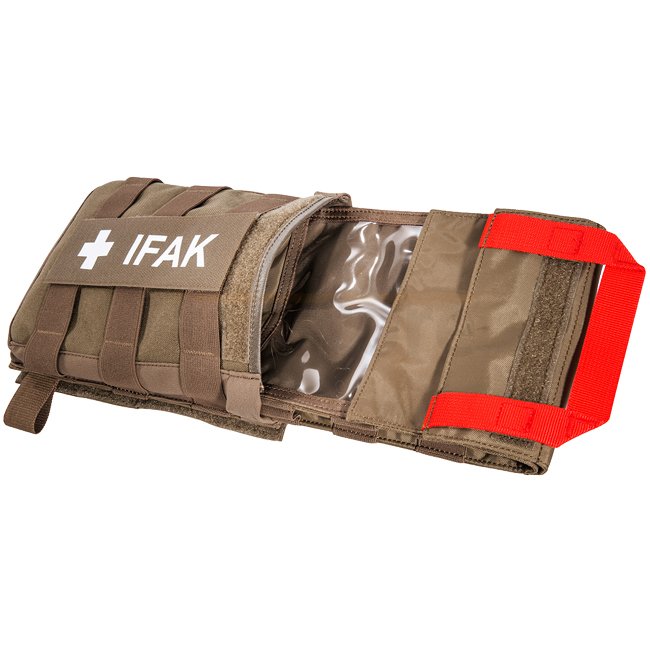 First-aid kit with MOLLE hook and loop attachment. The TT IFAK Pouch VL L features hook panels for easy attachment to loop counterparts, for example directly on the TT Modular Front Seat Panel. It has a MOLLE hook and loop adapter. The IFAK kit is accessed from the side of the pouch. Made of CORDURA® and material with IRR treatment. Both the European CORDURA® materials as well as web-bing, hook-and-loop fasteners and buckles meet the high German Bundeswehr standards TL 8305-0278 and TL 8305-0281 with regard to the IRR camouflage effect (IRR 650 – 1250nm / 10 – 42%).