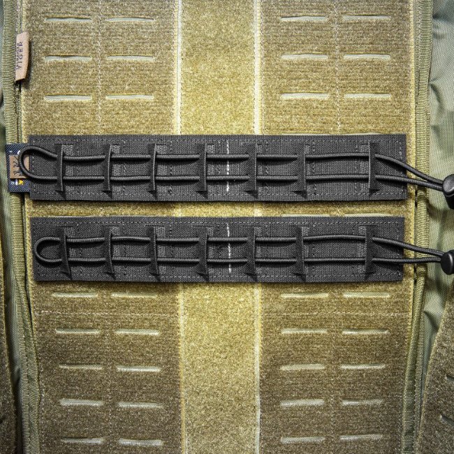 Consists of 4 pouches in 3 sizes Flat bungee cord strip for small medical gear with a hook-and-loop back panel. The strip can be attached with hook-and-loop inside modular TT Medic Packs or on the outside using hook-and-loop panels.