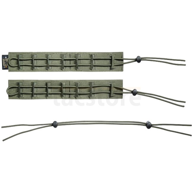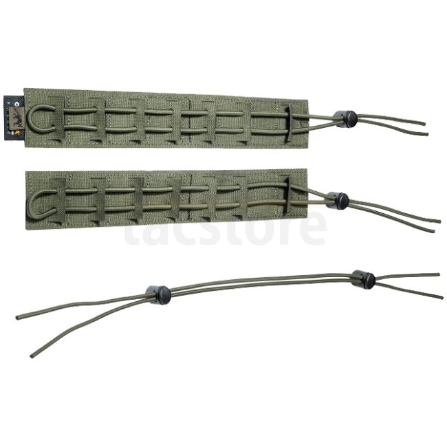 Consists of 4 pouches in 3 sizes Flat bungee cord strip for small medical gear with a hook-and-loop back panel. The strip can be attached with hook-and-loop inside modular TT Medic Packs or on the outside using hook-and-loop panels.