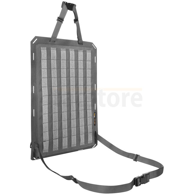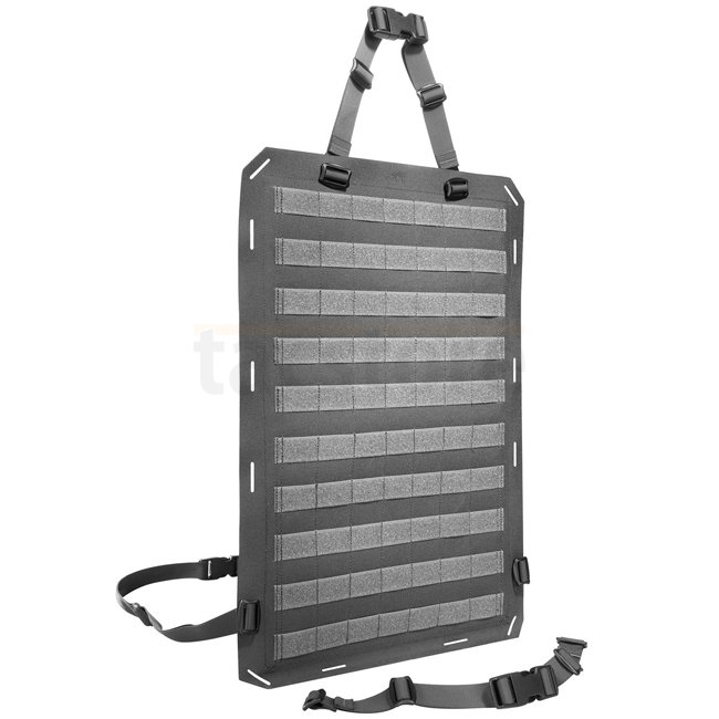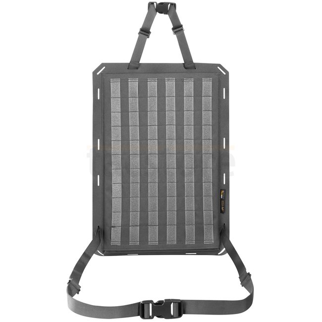 MOLLE panel for use on rear car seats. The panel can be used both horizontally (rear seat) and vertically (front seat). When equipped with MOLLE hook-and-loop, the modular hook-and-loop pouches can also be attached. The panel can be quickly removed from the vehicle with all attachments and used. Part of the TacVec series.