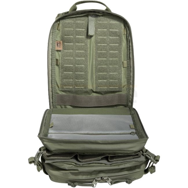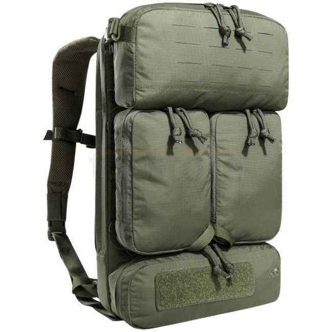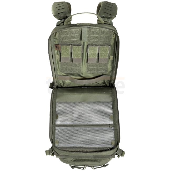 Lightweight, tactical deployment backpack with 14 liter volume for modular use. With three front pockets (partially fold-down or detachable), hydration system preparation, MOLLE hook-and-loop and MOLLE reverse system on the back and plate carrier adapter.