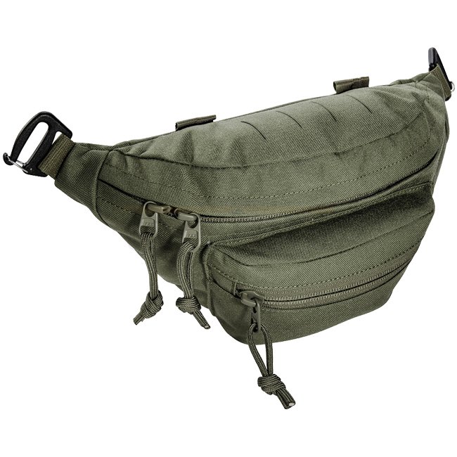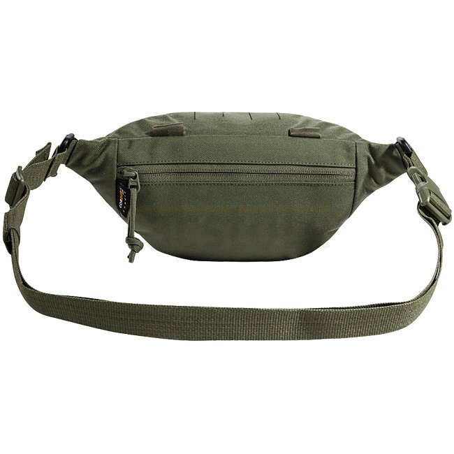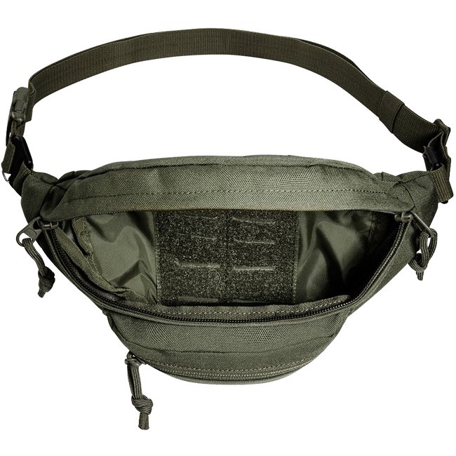 Universal hip bag. The TT Modular Hip Bag has a MOLLE hook and loop main compartment, a small front pocket and an additional zipper pocket on the side. The lid has a laser-cut MOLLE strip. The belt is removable and the built-in hooks allow you to attach the bag to an equipment belt, for example