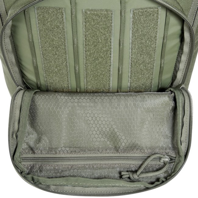 This modular first-aid backpack with a 38 l volume is designed for tactical operations and special police units. It can be worn over body armour or attached directly to it with supplied adapter straps.