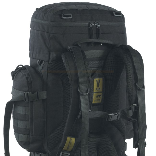 Classic military backpack with V2 Plus carrying system. Detachable hip strap doubles as a Warrior Belt, adjustable back length for flexibility. V2 Plus Carrying System, fixation for hiking poles or ice axes, adjustable chest belt, compression straps, easy