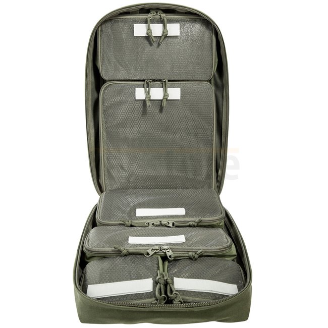The TT Survival Pack offers the right size and equipment for the most important survival utensils. The fully expandable main compartment features six pockets of varying sizes with transparent lids, two of which can be removed. The main compartment is also covered with a large MOLLE hook-and-loop area, which allows for individual additions. The bottom compartment contains a double-sided rain cover (one side with stripes in warning orange) and a tac marker. Two shallow zippered compartments on the front are great for storing documents, for example. Additional pockets or panels can also be hooked into the existing hooks on the front. Backpack shoulder straps as well as carrying handles can be stowed when the backpack is stored in vehicles.