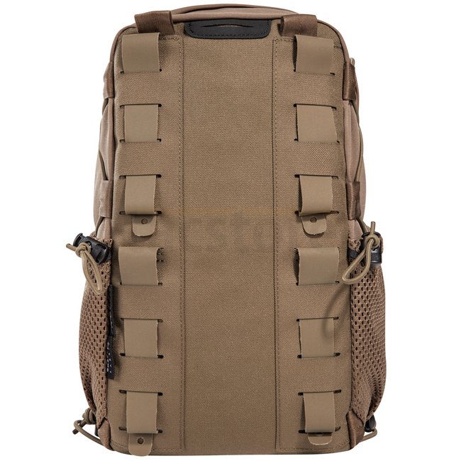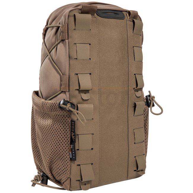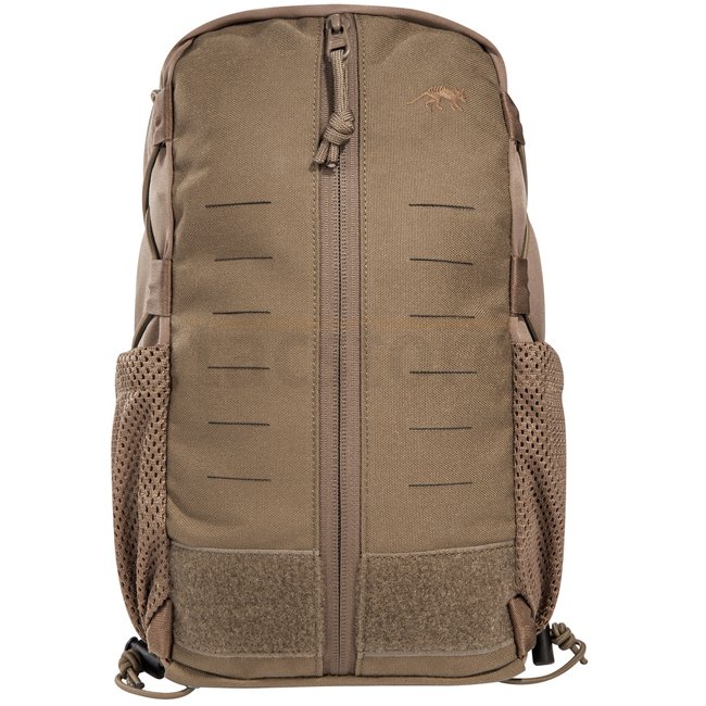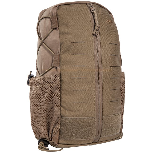 The TT Tac Pouch 11 with 7 liters volume offers quick access through the center zipper. The functional interior division of the main compartment with MOLLE hook-and-loop and bungee cord can be used for medical equipment, for example. The bag also has side pockets made of mesh, e.g. for magazines, and MOLLE in laser-cut design as well as a hook-and-loop area on the front. The entire system can be compressed flat with bungee cord. The bag is also equipped with a hydration system preparation and the corresponding output.