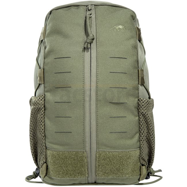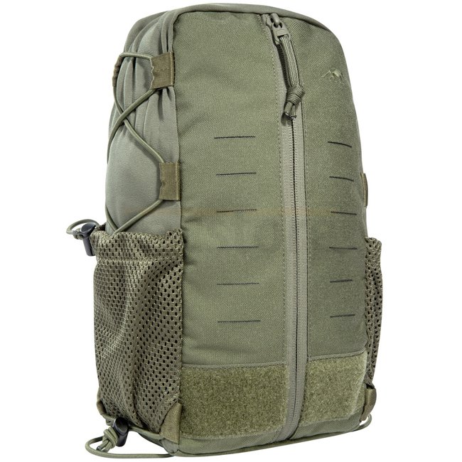 The TT Tac Pouch 11 with 7 liters volume offers quick access through the center zipper. The functional interior division of the main compartment with MOLLE hook-and-loop and bungee cord can be used for medical equipment, for example. The bag also has side pockets made of mesh, e.g. for magazines, and MOLLE in laser-cut design as well as a hook-and-loop area on the front. The entire system can be compressed flat with bungee cord. The bag is also equipped with a hydration system preparation and the corresponding output.