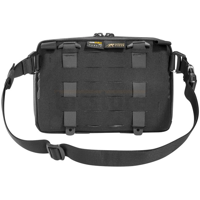 Tasmanian Tiger Tac Pouch 8.1 Hip - Black: Tactical hip pouch with versatile MOLLE system for easy attachment to plate carriers and backpacks. Features flat mesh pockets, elastic loops, and large MOLLE hook-and-loop surface. Made of durable CORDURA® 700D