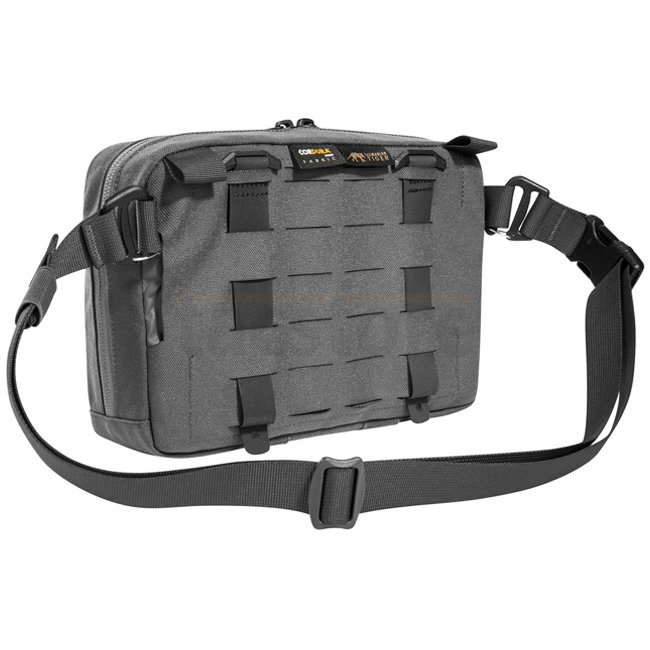 The Tasmanian Tiger Tac Pouch 8.1 Hip in Titan Grey is a versatile bag with a removable MOLLE reverse system for easy attachment. Ideal for plate carriers, backpacks, and MOLLE surfaces with loops. Features flat mesh pockets, elastic loops, and a spacious