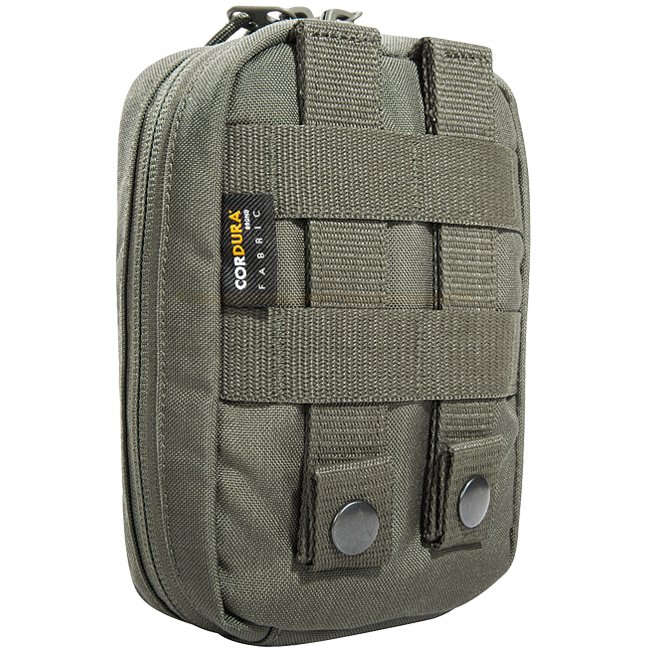 Medic accessories bag vertical with generous interior. Made of CORDURA® and material with IRR treatment. Both the European CORDURA® materials as well as web-bing, hook-and-loop fasteners and buckles meet the high German Bundeswehr standards TL 8305-0278 and TL 8305-0281 with regard to the IRR camouflage effect (IRR 650 – 1250nm / 10 – 42%).