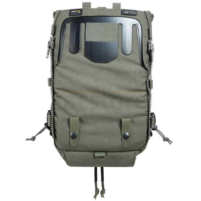 The TT Tool Pack ZP IRR is designed for the TT Plate Carrier QR LC ZP IRR, the attachment is via side zippers. The pack can also be mounted on other plate carriers on the market with the appropriate zipper length and width. In addition, In addition, the included zippered MOLLE strip allows it to be attached to plate carriers with a MOLLE scheme. An additional adapter is included for attachment to classic MOLLE straps. The fold-out main compartment is suitable for bolt cutters up to a length of 80 cm, the fold-out front compartment accommodates various entry tools, and the hooked-in tubes can also be removed. In addition, the pack has insertion options for breach pens on the sides. On the front is MOLLE in laser-cut design, the elastic side compression can be removed.