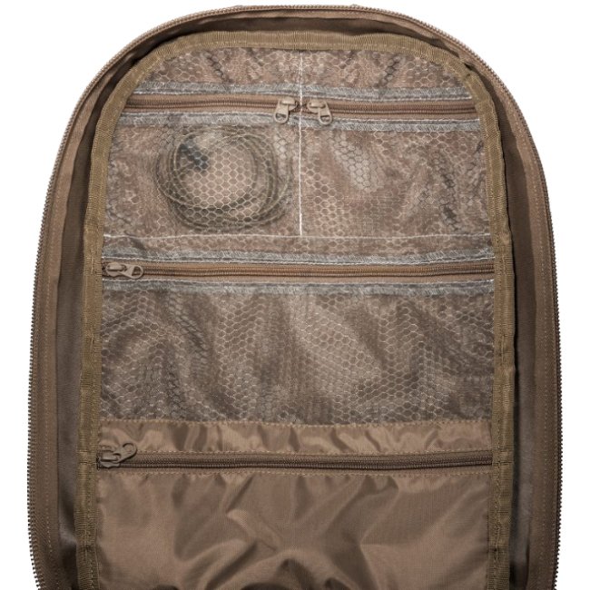 Inconspicuous daypack with modular options. The TT Urban Daypack 22 has an inconspicuous look to it so it’s perfect for civilian use. The completely removable main compartment features MOLLE hook-and-loop so it can be modularly arranged. The transparent mesh zipper pouches in the main compartment and a front pocket with side access gives you even more organizational options. The daypack also has a removable hip belt.