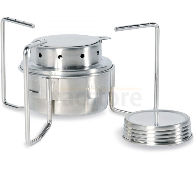 Spirit stove Tatonka Burner Set - small pack spirit stove with compact burner, integrated flame adjuster, and four-part stand. Burner (Ø 7,5 x 5,5 cm, 95 g), Flame adjuster (Ø 7,65 x 2,5 cm, 30 g), Stand Alcohol Burner (7,5 x 3 cm, 85 g). Volume: 120 ml,