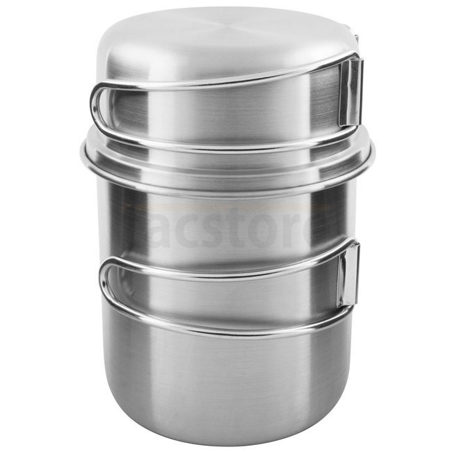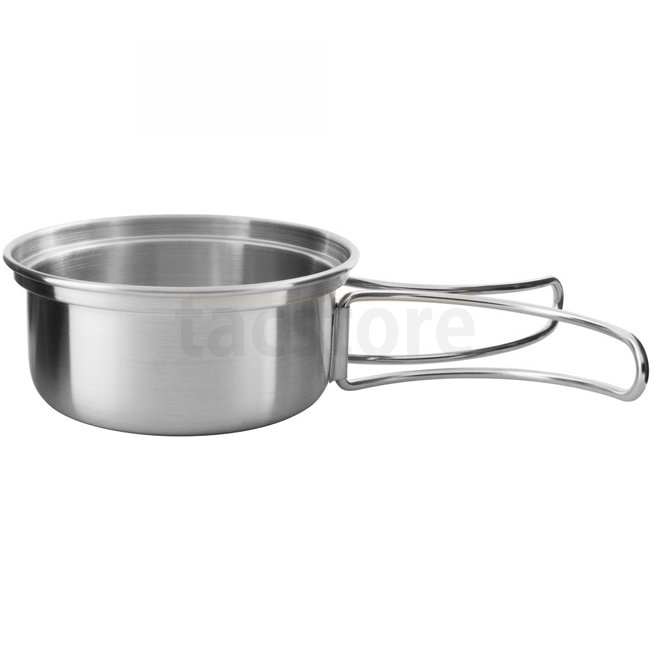 The Tatonka Handle Mug Set consisting of mug and lid with folding handles is suitable as basic equipment for trekking. Both have a volume scale and are made of 18/8 stainless steel. The cup has a capacity of 600 ml, the lid with a height of 4 cm can be used as a bowl or pan.
