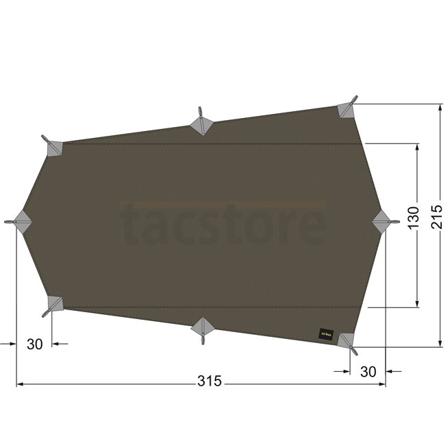 The tent replacement for minimalists is made of silicone-coated, highly tear-resistant nylon ripstop material with 20 denier fiber thickness. The tarp measures 315 x 215 cm.