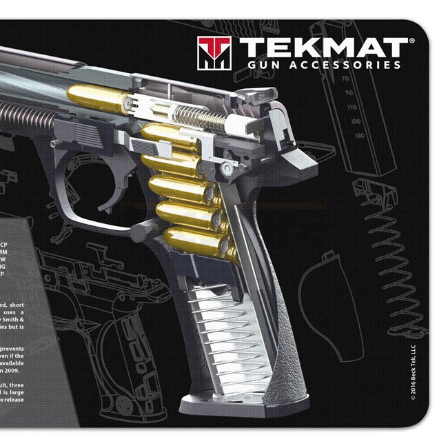TekMat Cleaning & Repair Mat - S&W M&P Cut Away. Versatile mat for weapon maintenance, work pad, or desktop use. Slim thickness of 3mm. 43 x 28cm.