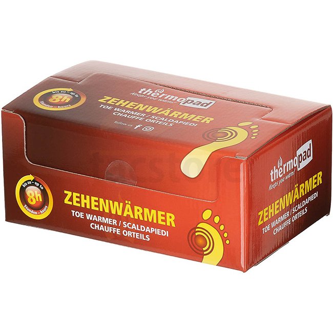 Single-use toe warmer that heats up to ca. 8 hours at a temperature of ca. 45°C. Activated by oxygen, with adhesive for easy application on socks. Disposal in residual waste after use. Compact dimensions: ca. 9 x 7 cm. Contains iron powder, salt, activate