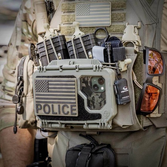 While the original DarkVault® remains Thyrms generalist critical gear case, the DarkVault 2.0 Critical Gear Case is purpose-built for smartphone use in austere environments. Simply attach the DarkVault 2.0 to you plate-carrier or chest rig and you can quickly dock and use your phone for navigation, ballistics info, ad-hoc mesh comms, or any other use. Thyrm designed the DarkVault 2.0’s phone holder and viewing window to work with most smartphones in the market with normal phone cases, you no longer need to run a bulky, conspicuous case just to have a tactical mounting solution.