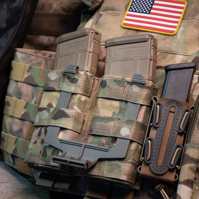 Strap/latch holes for locks and tamper-evident devices to prevent access to internals and secure case to MOLLE