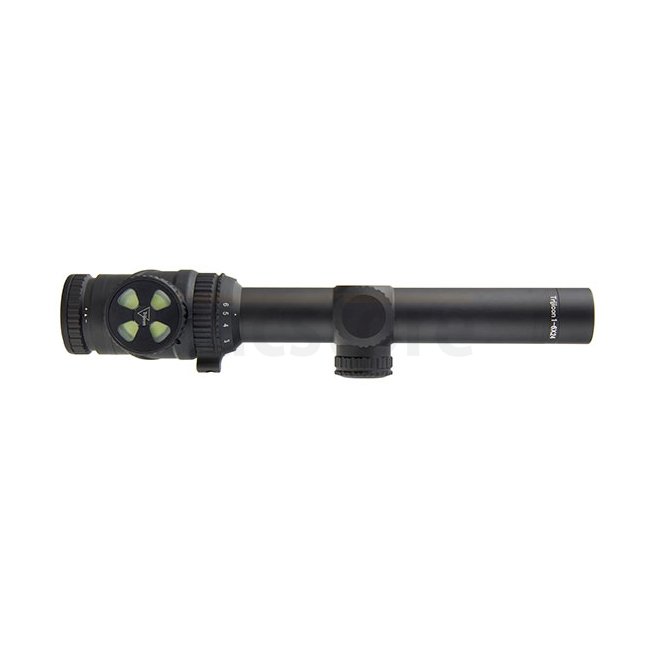 The Trijicon AccuPoint 1-6x24 Riflescope features a Standard Duplex Crosshair reticle with Green Dot illumination, providing quick target acquisition. This scope offers 1-6x magnification, 24mm objective size, and a rugged forged aluminum housing. Ideal f