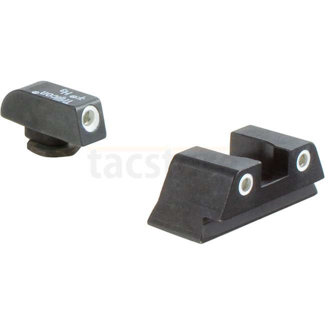 Trijicon Bright & Tough night sight set designed for Glock small frame models 42, 43, 43x, 43E, and 48. Features white outline front sight with green Tritium and white outline rear sight with orange Tritium. Enhance your Glock's visibility in low-light co